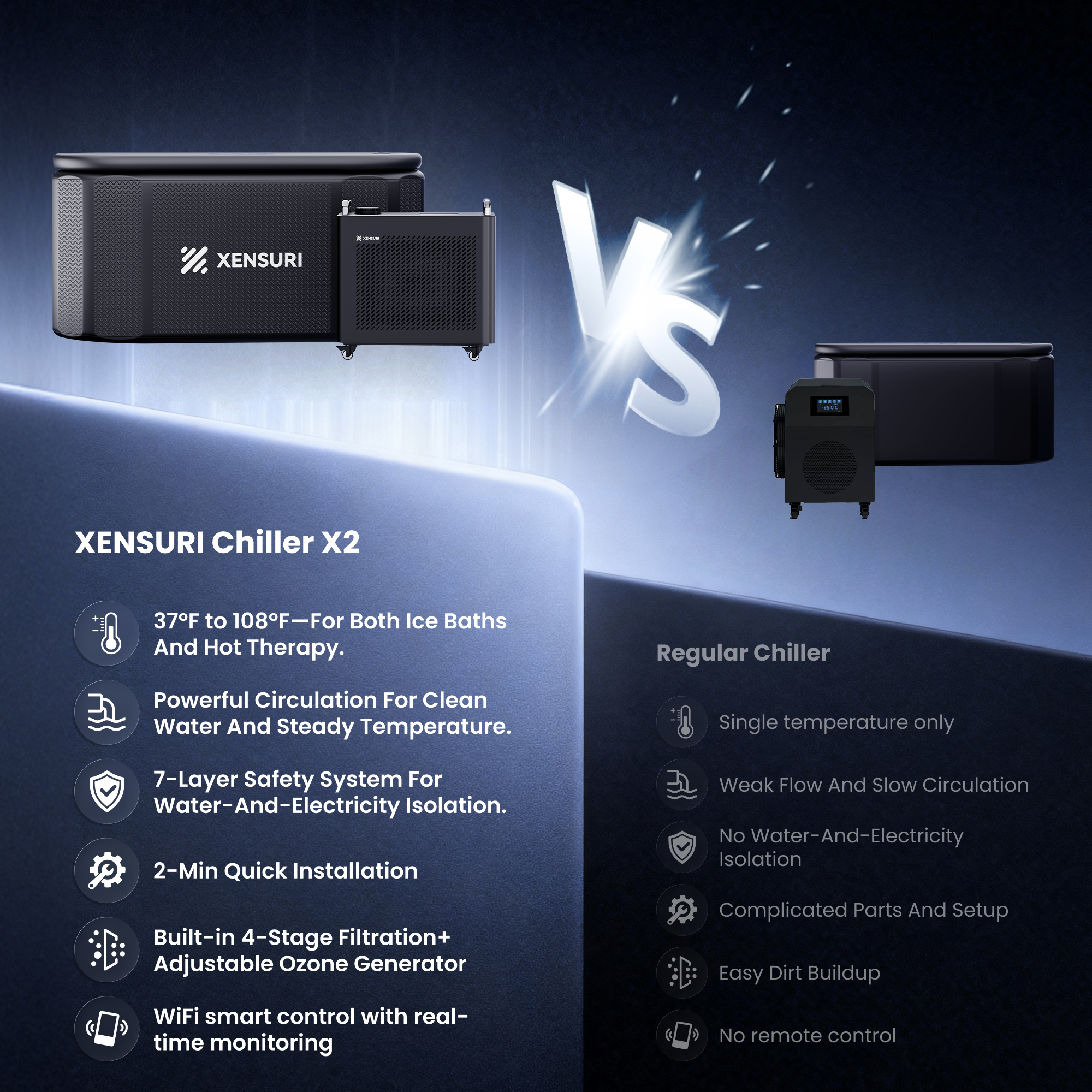 Multi-temperature capabilities, powerful circulation, enhanced safety systems, easy installation, advanced filtration, and smart control. A perfect choice for both ice baths and hot therapy.