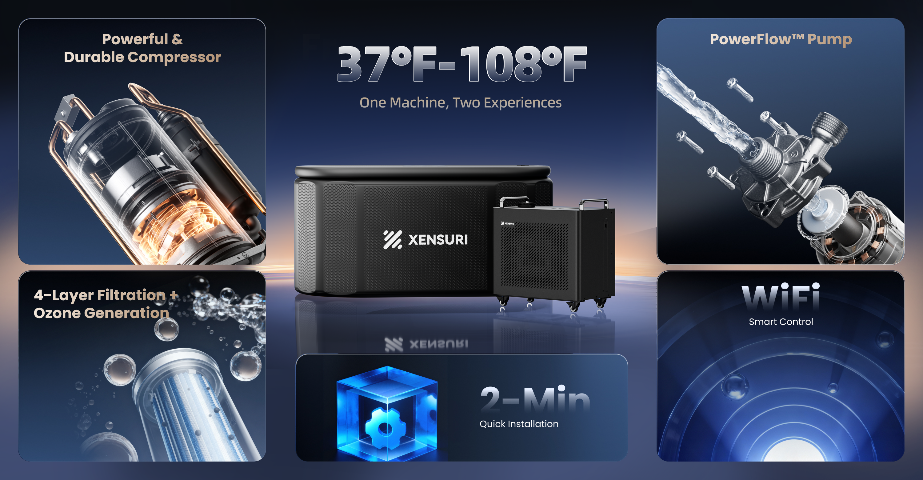 ✓ Dual Climate Control – Adjustable temperatures from 37°F to 108°F for cold plunges or heat sessions.